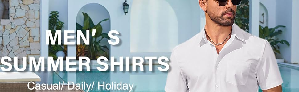 قميص منسوج بأكمام قصيرة وأزرار أمامية وجيب، قميص شاطئ صيفي خفيف الوزن للرجال من كوفاندي